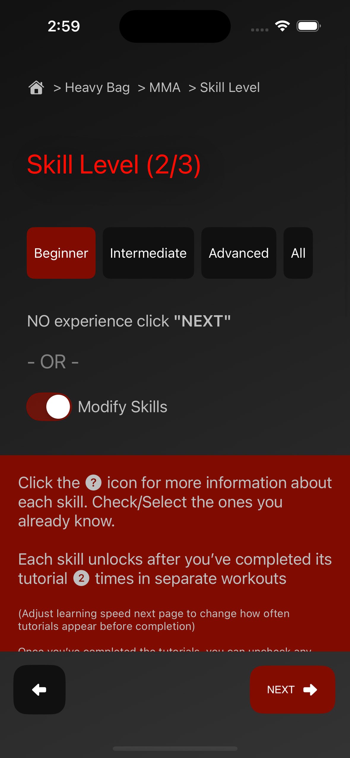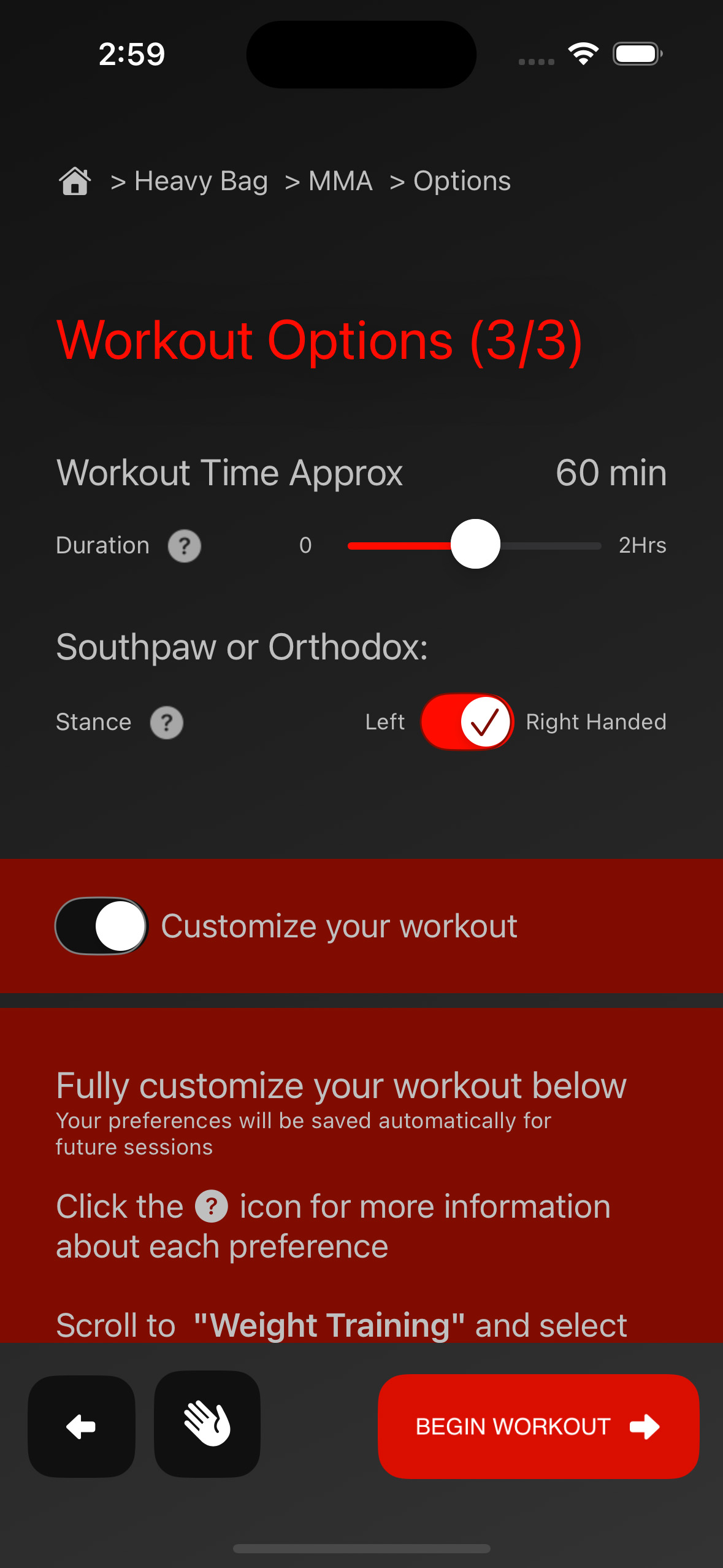 Not one-size-fits-all. One Two Hook doesn’t just give you a library of videos — it creates a personalized workout tailored to your skill level, goals, time and available equipment. No endless scrolling, no searching.